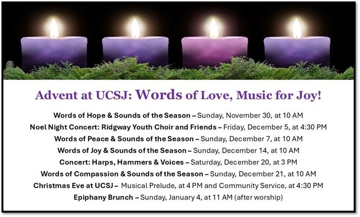 All are welcome! If you are interested in joining the choir, contact Katy Kristoffersen, Director of Music (ucsjmusic@gmail.com).